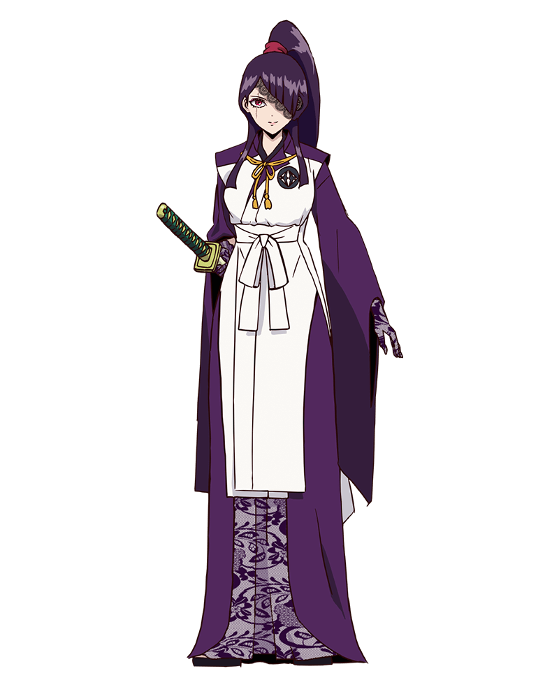 黒髪ポニーテールと右目に走る刀傷が目を引く「上杉武士団」の軍師。戦術・戦略ともに優れ、ときには戦場に立つこともあり、仲間を守るためのみに鬼鉄刀を使う。ストレス発散の方法は、散財。
